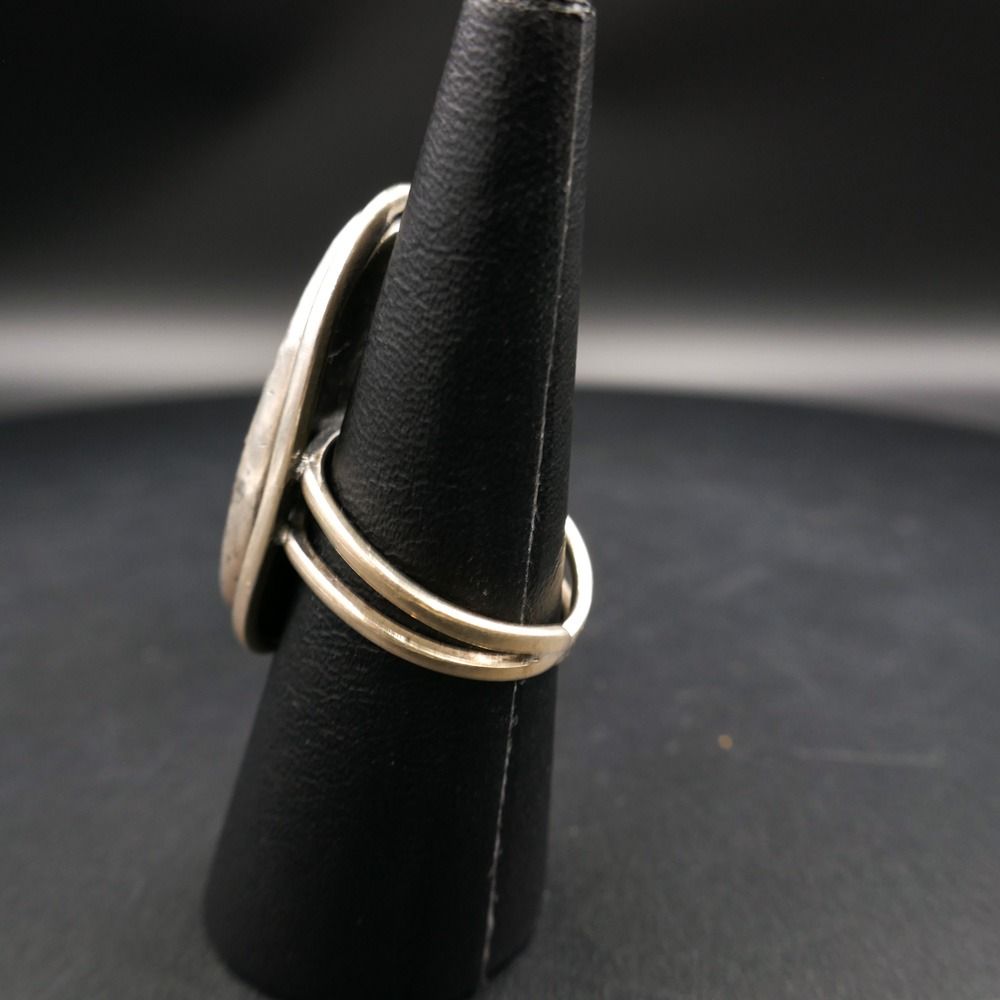 Ringen er israelsk vintage. Den har en form, der ligner udpræget nordisk design. Selve fatningen er oxyderet rundt i kanten, for at give ringen dybde (a la From)